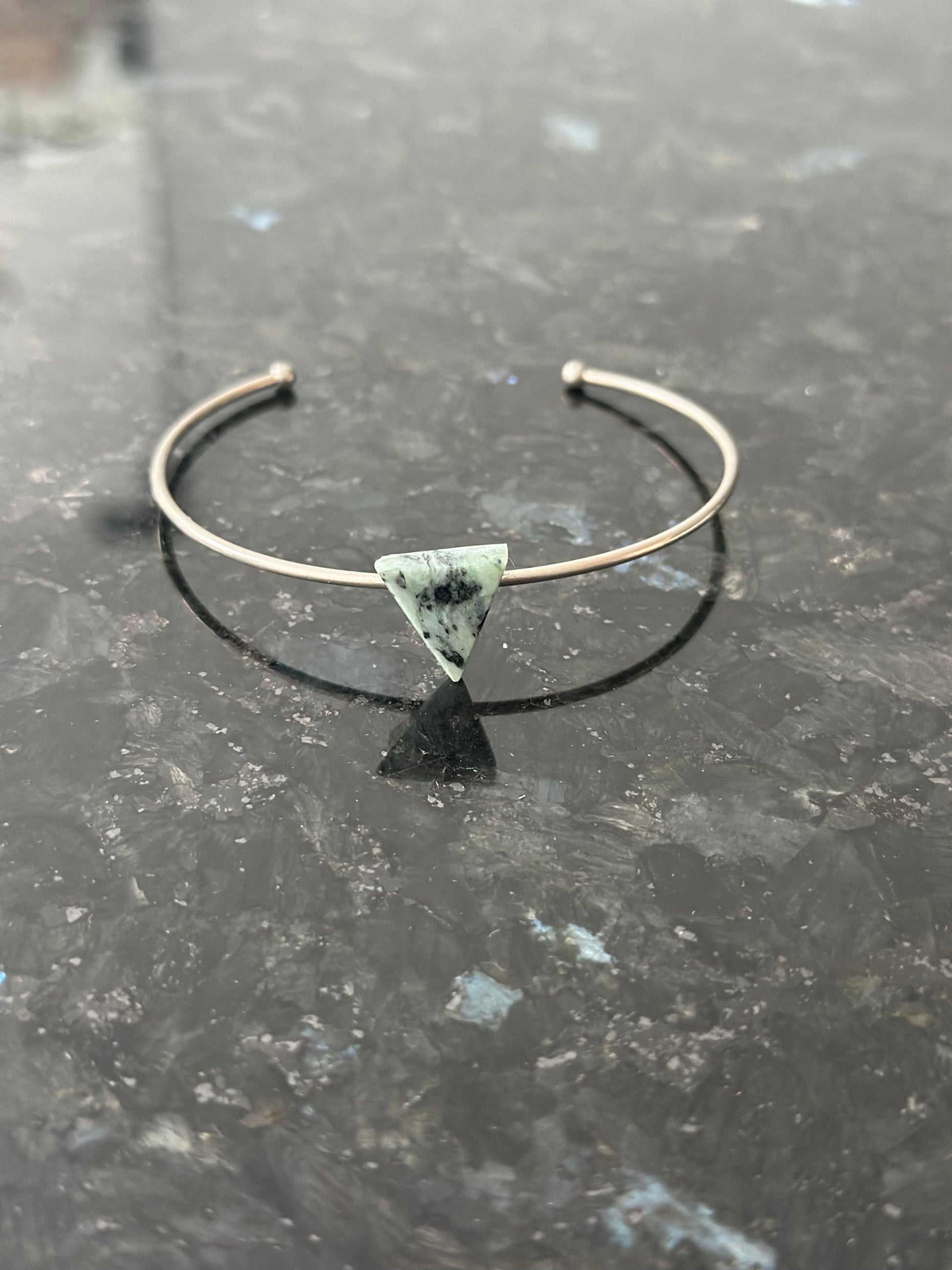 Silver cuff bracelet with triangular green Tinos island marble centerpiece
