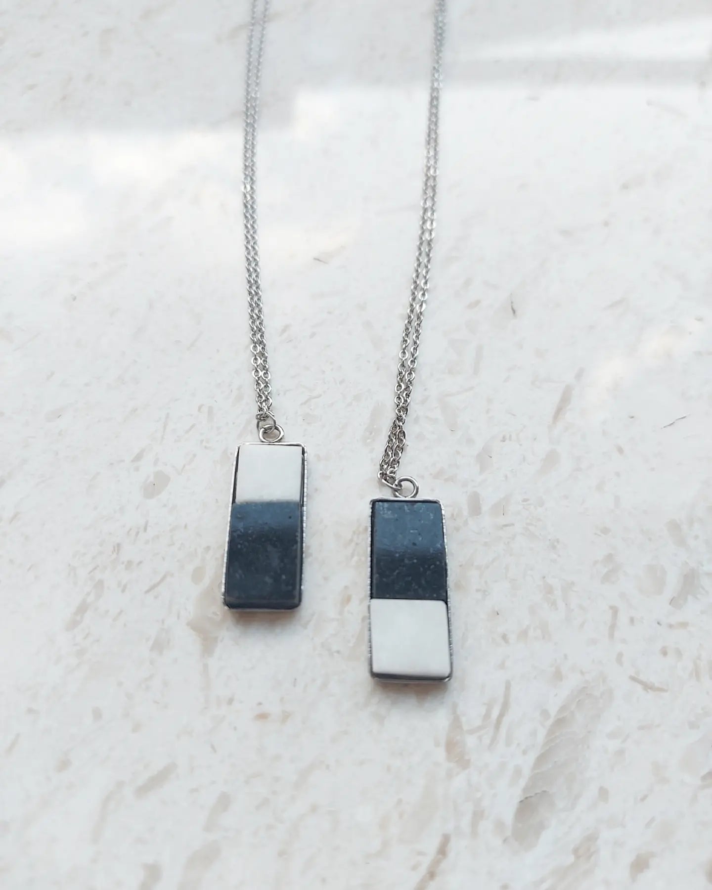 We're on a roll and there's no stopping our creativity! Here's a black and white marble& granite pendant necklace to lift your spirit sky high!