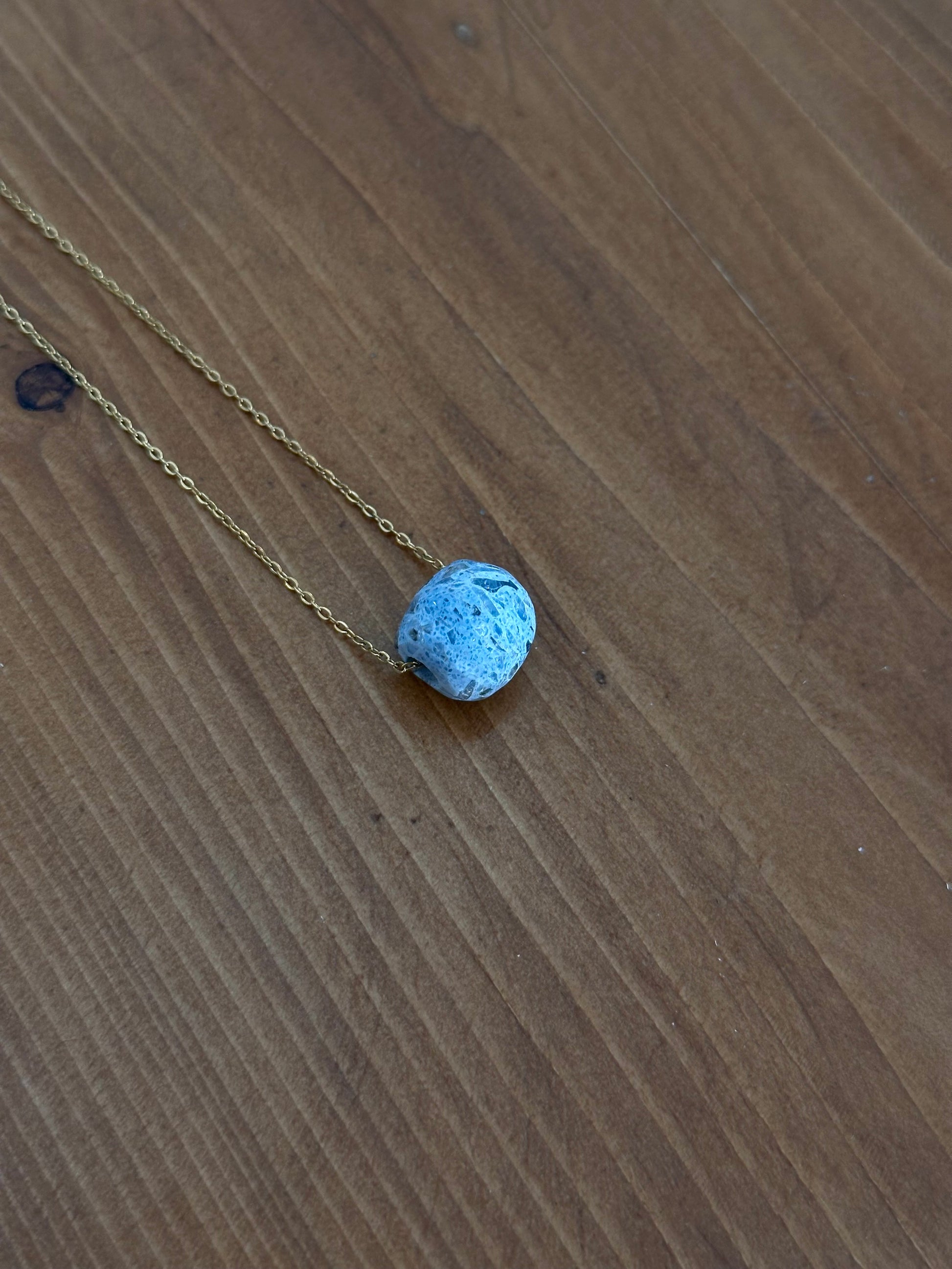 Σιέλ γρανίτης σε σχήμα μπάλας με χρυσή αλυσίδα