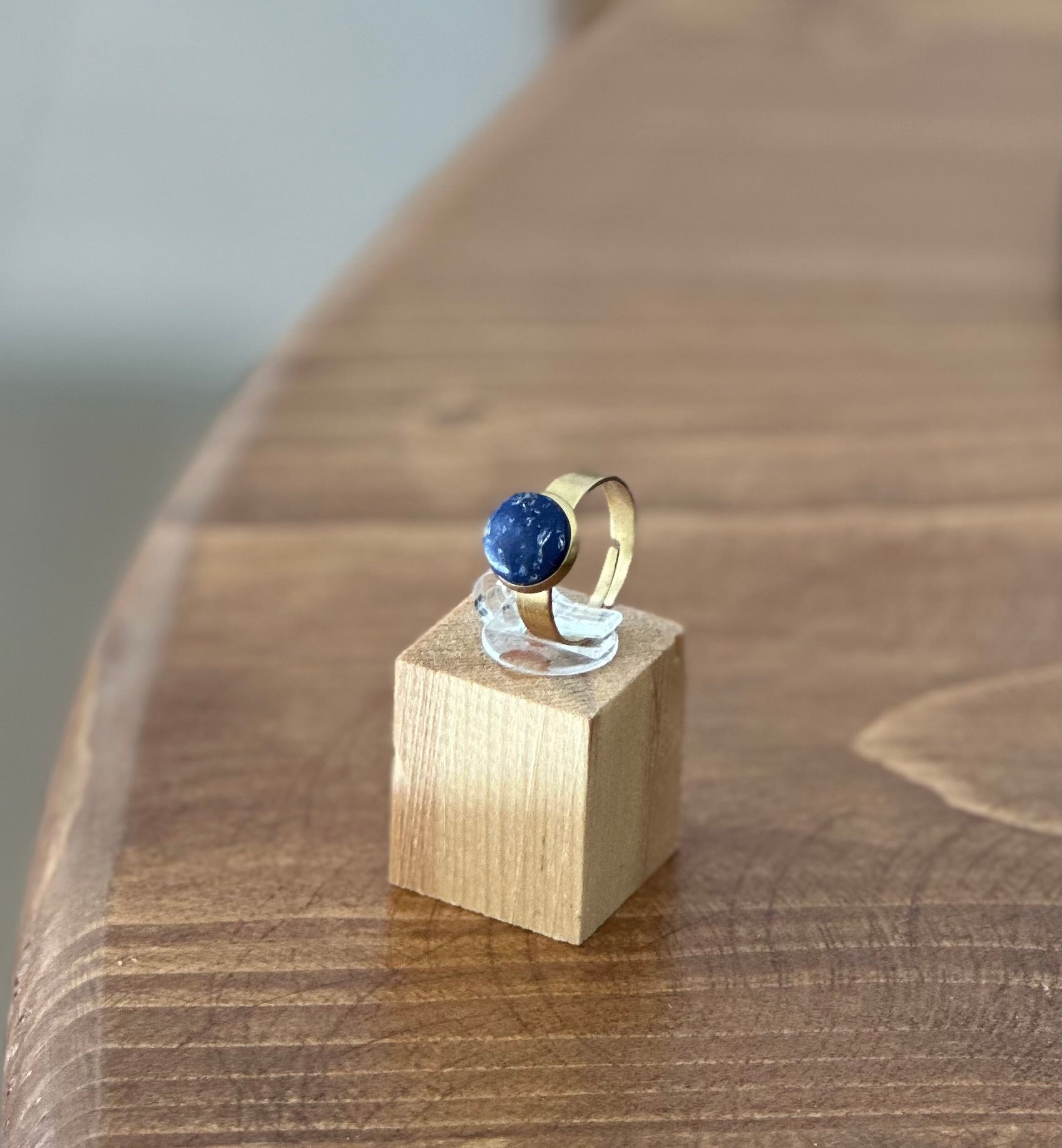 Αυξομειωμένο δαχτυλίδι σε χρυσό χρώμα από ανοξείδωτο ατσάλι με μπλε σκούρο γρανίτη