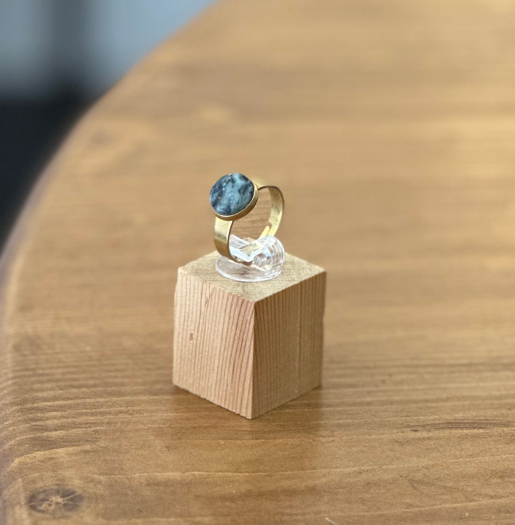 Golden adjustable ring with green Tinos marble centerpiece