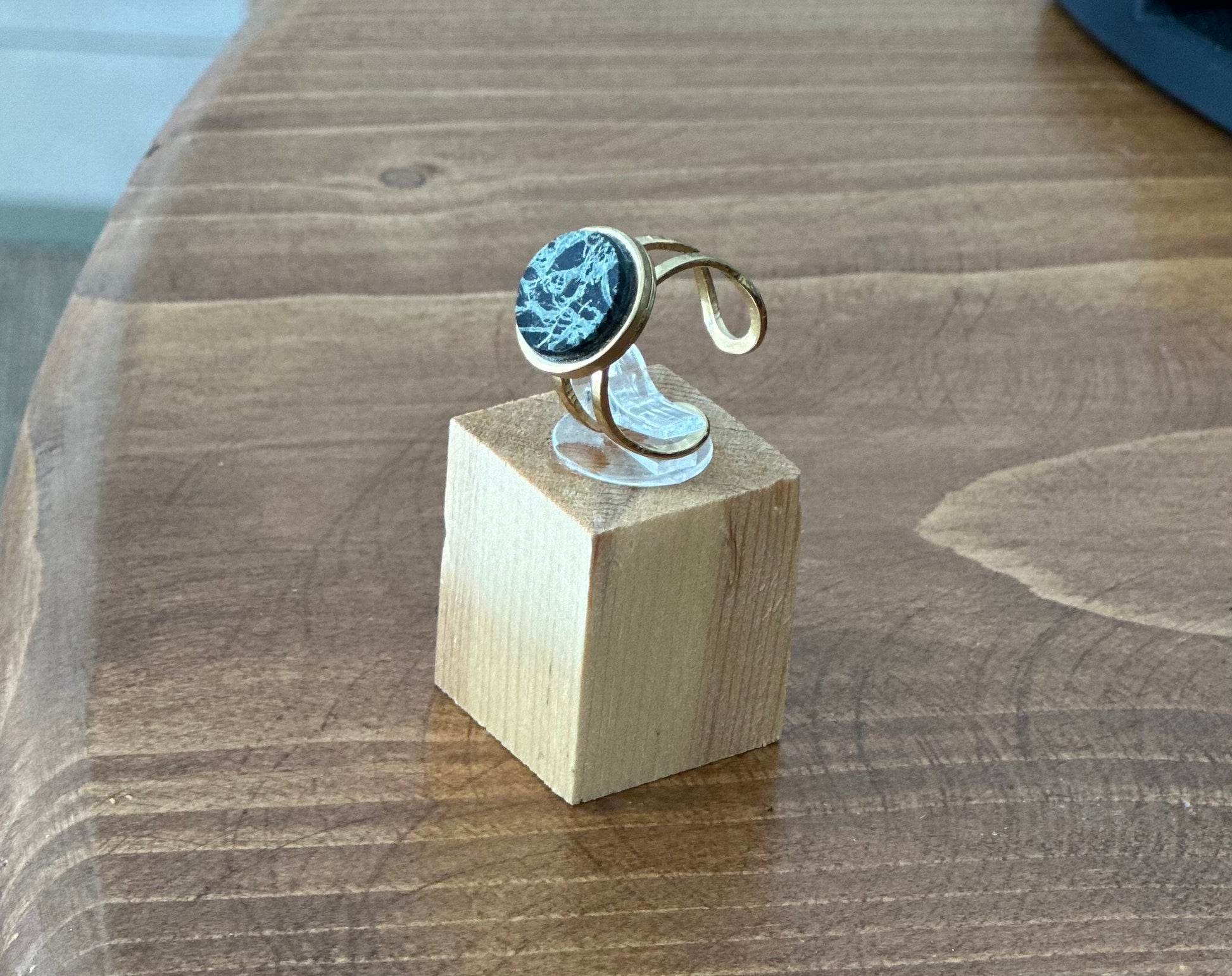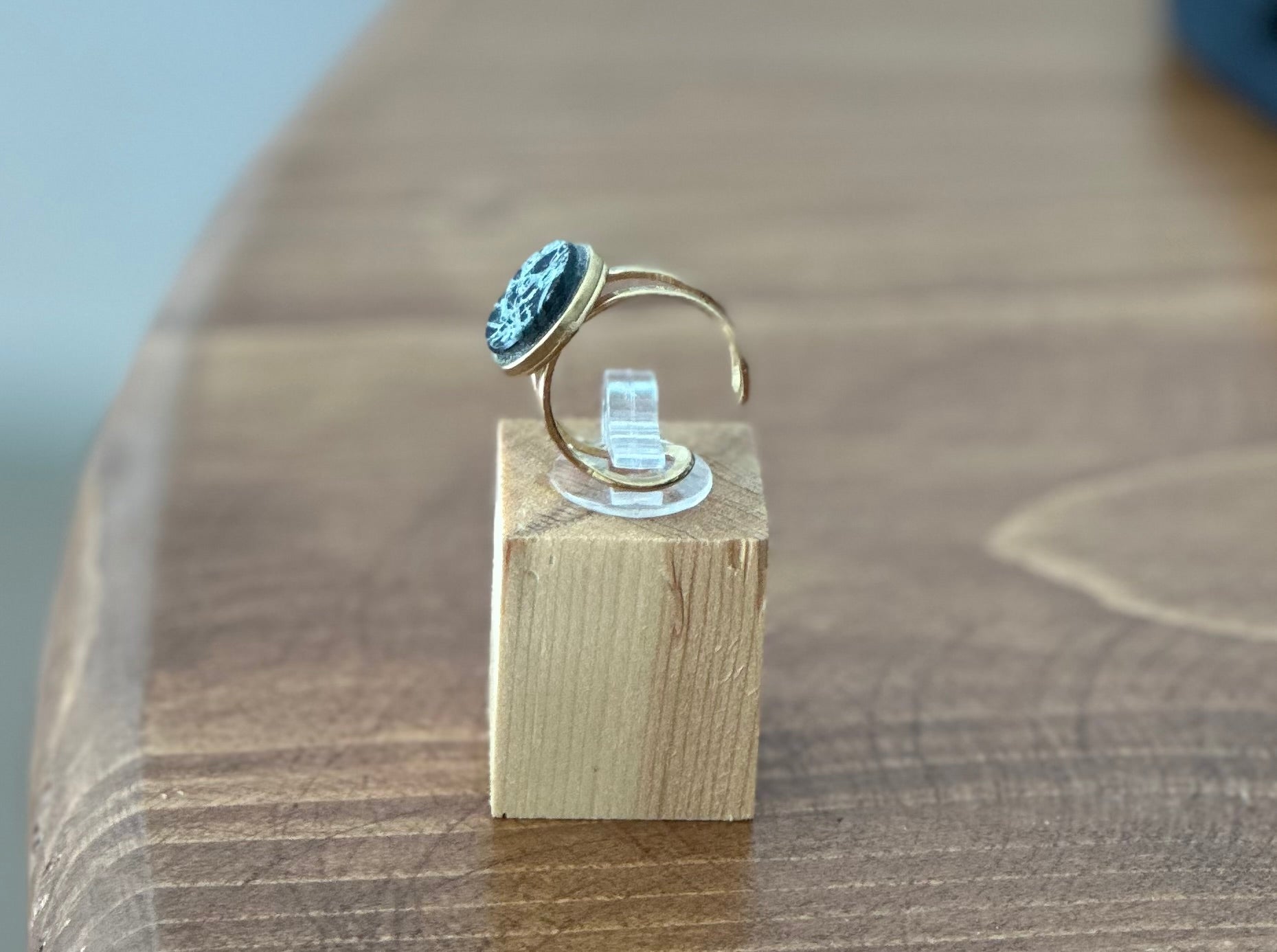 Δαχτυλίδι-διπλή βάση με πράσινο μάρμαρο Τήνου