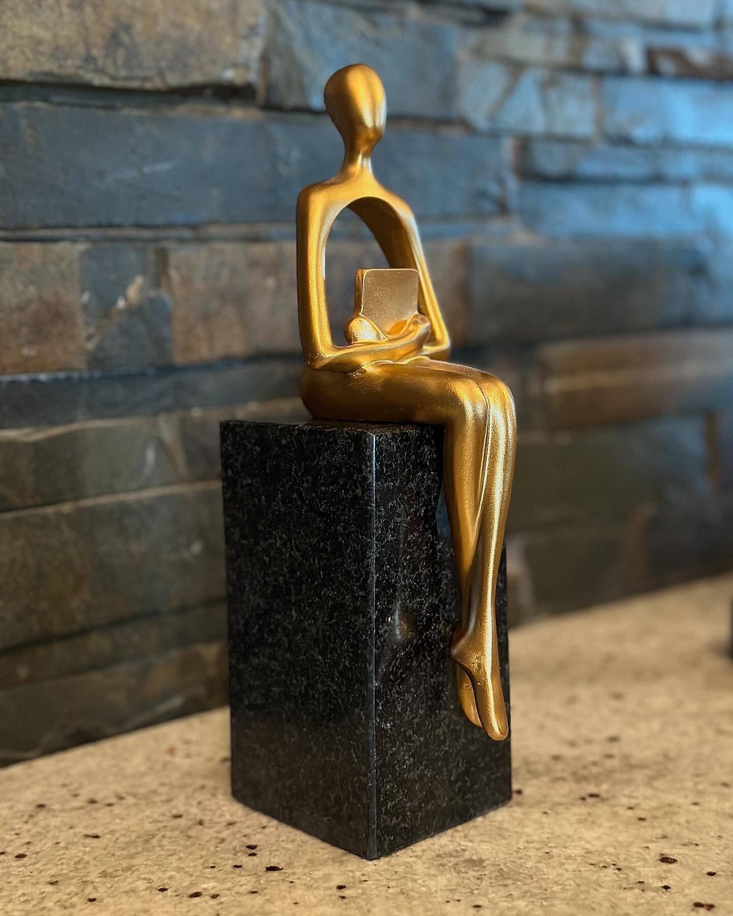 Μασίφ μαύρος γρανίτης με χρυσή φιγούρα