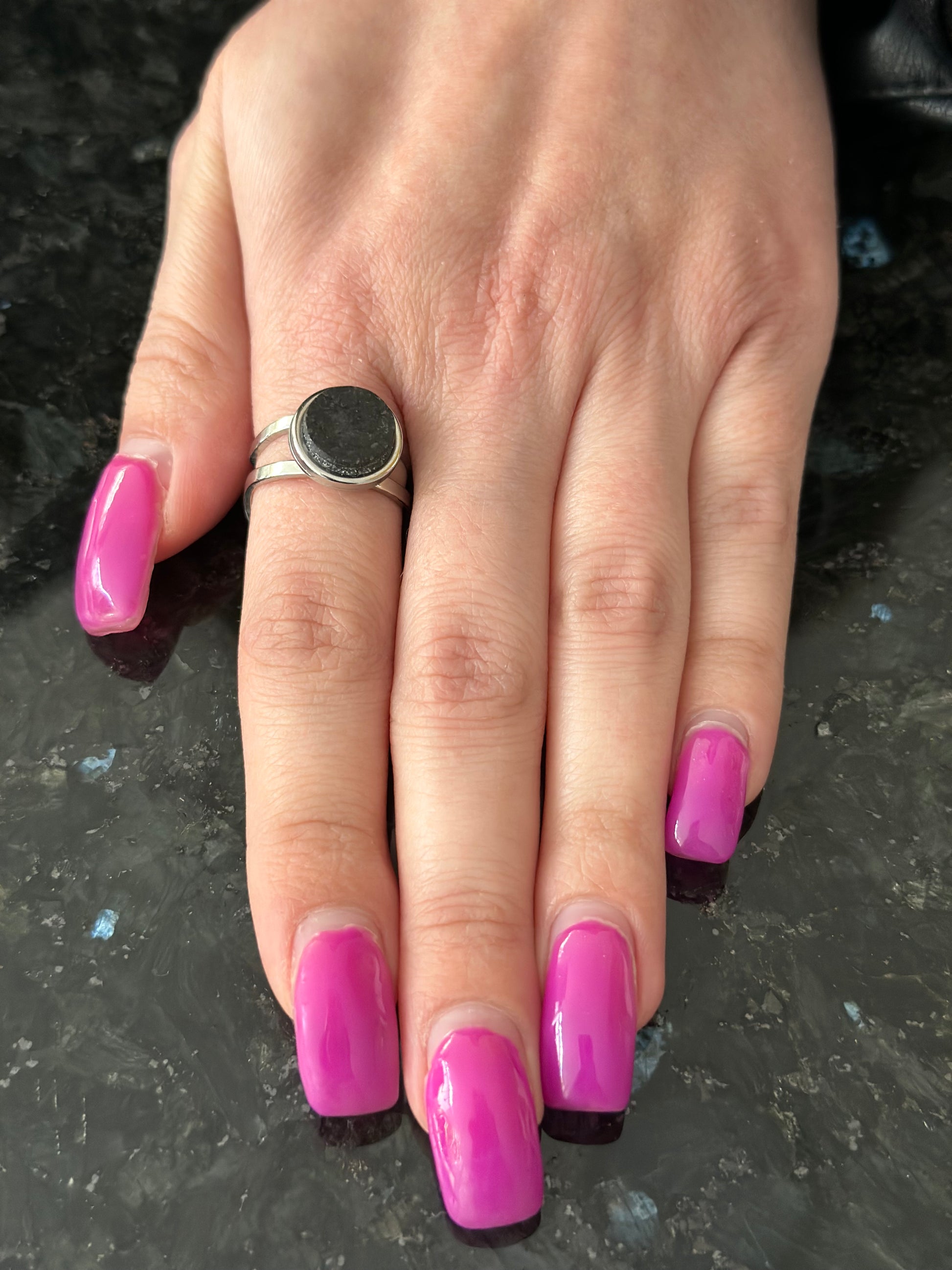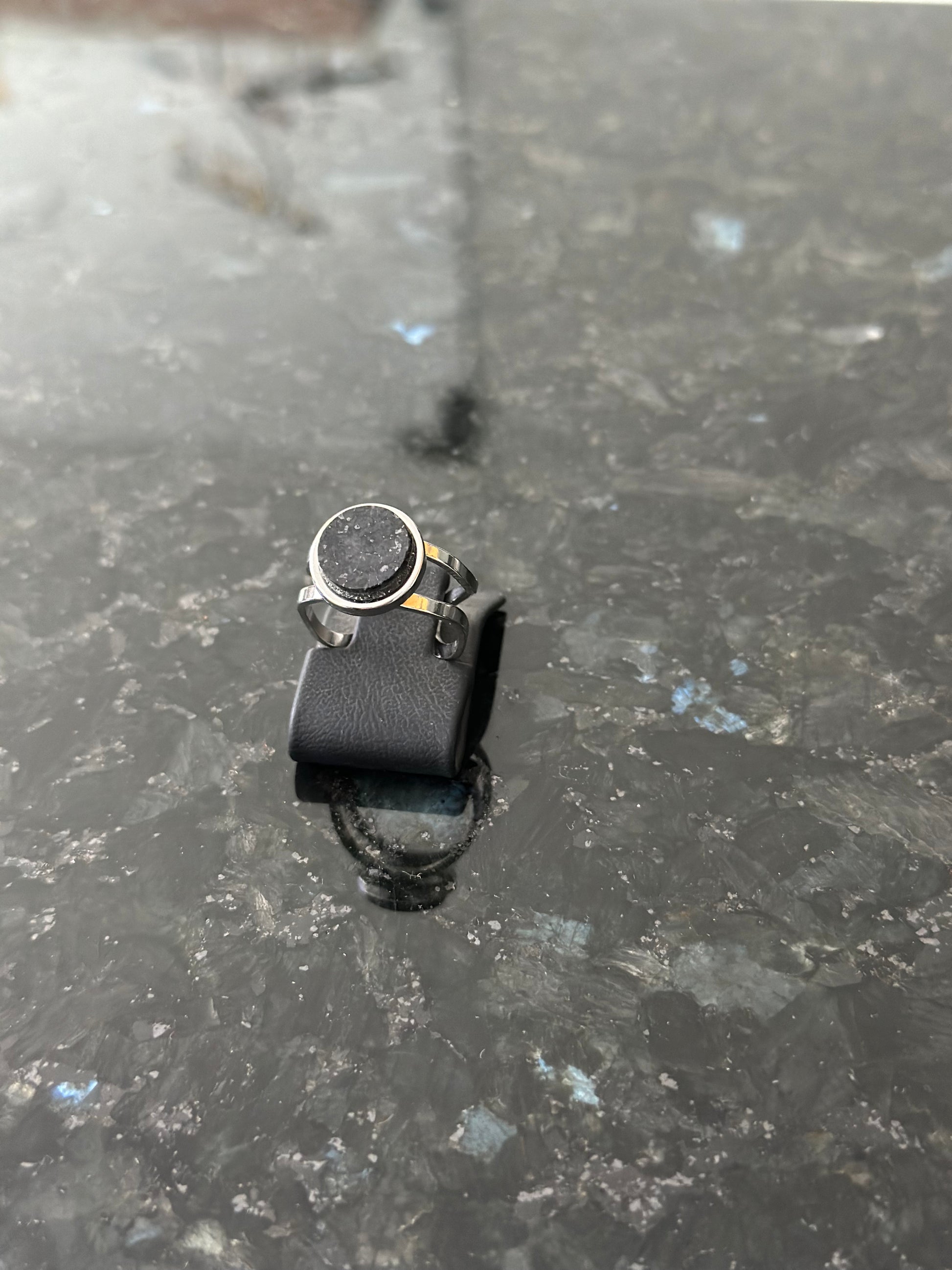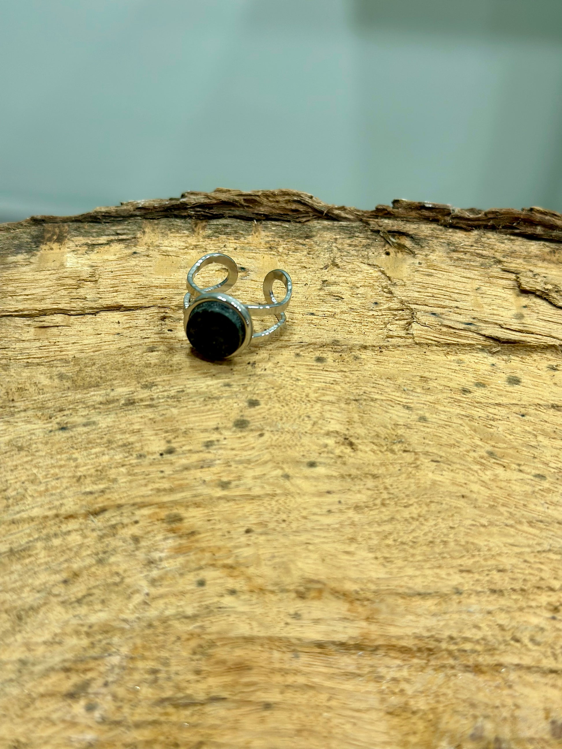 Silver double ring with black Indian granite centerpiece