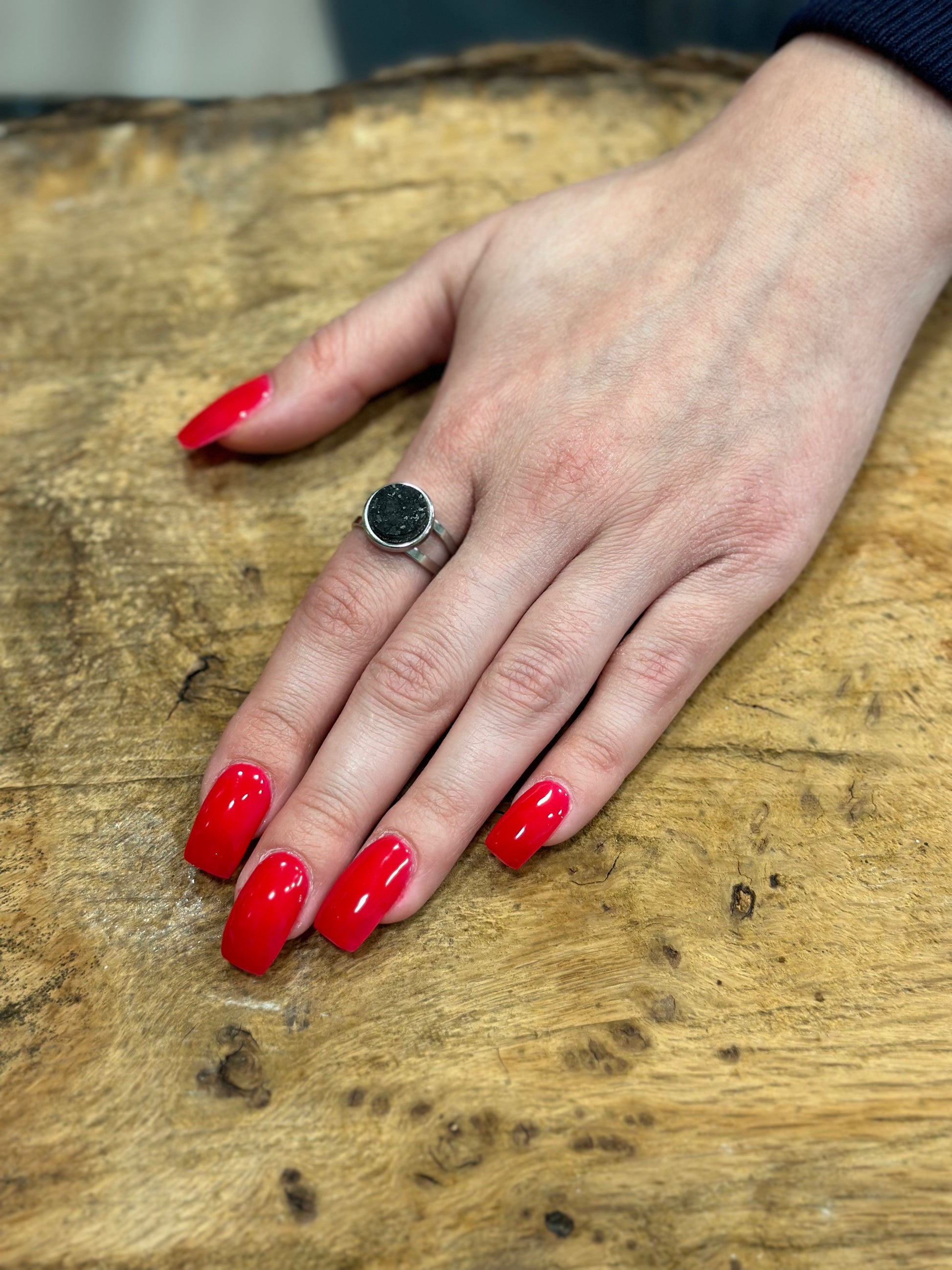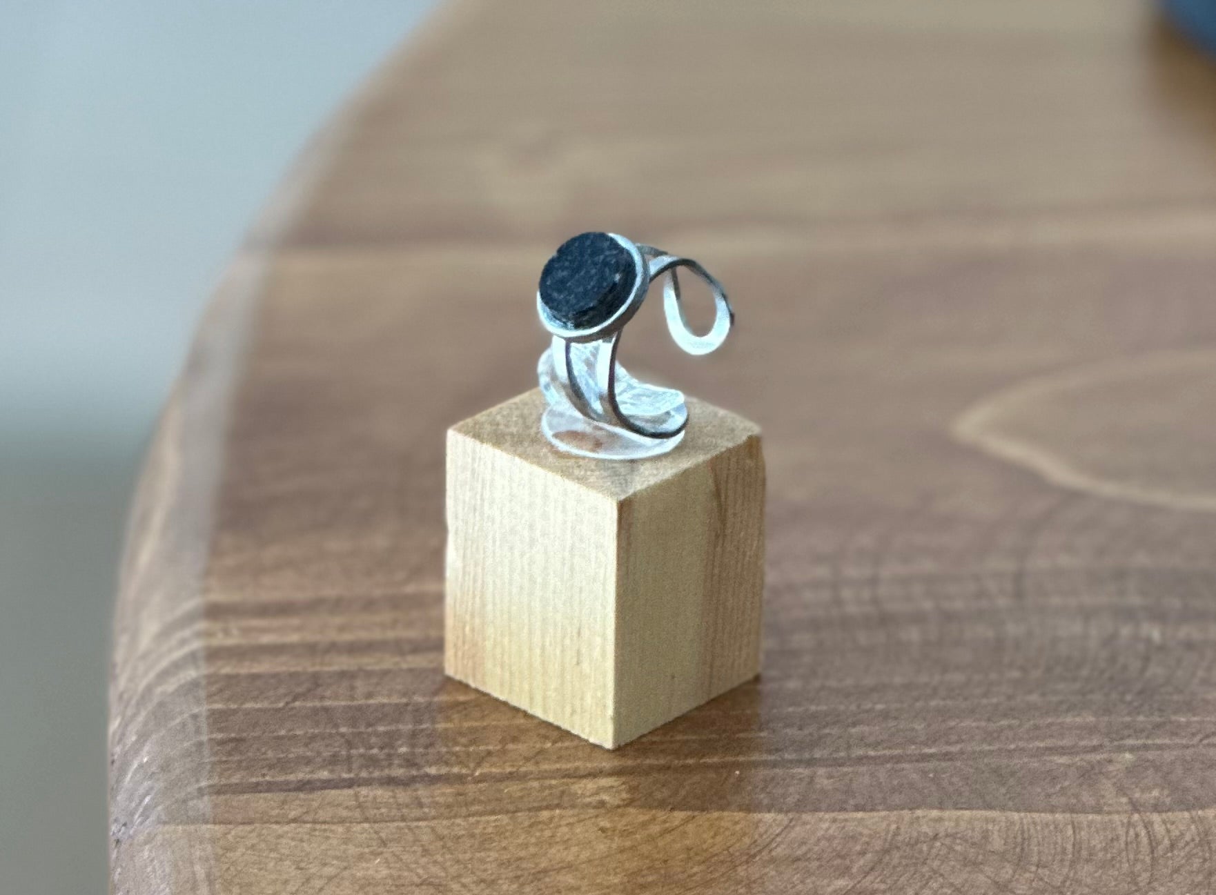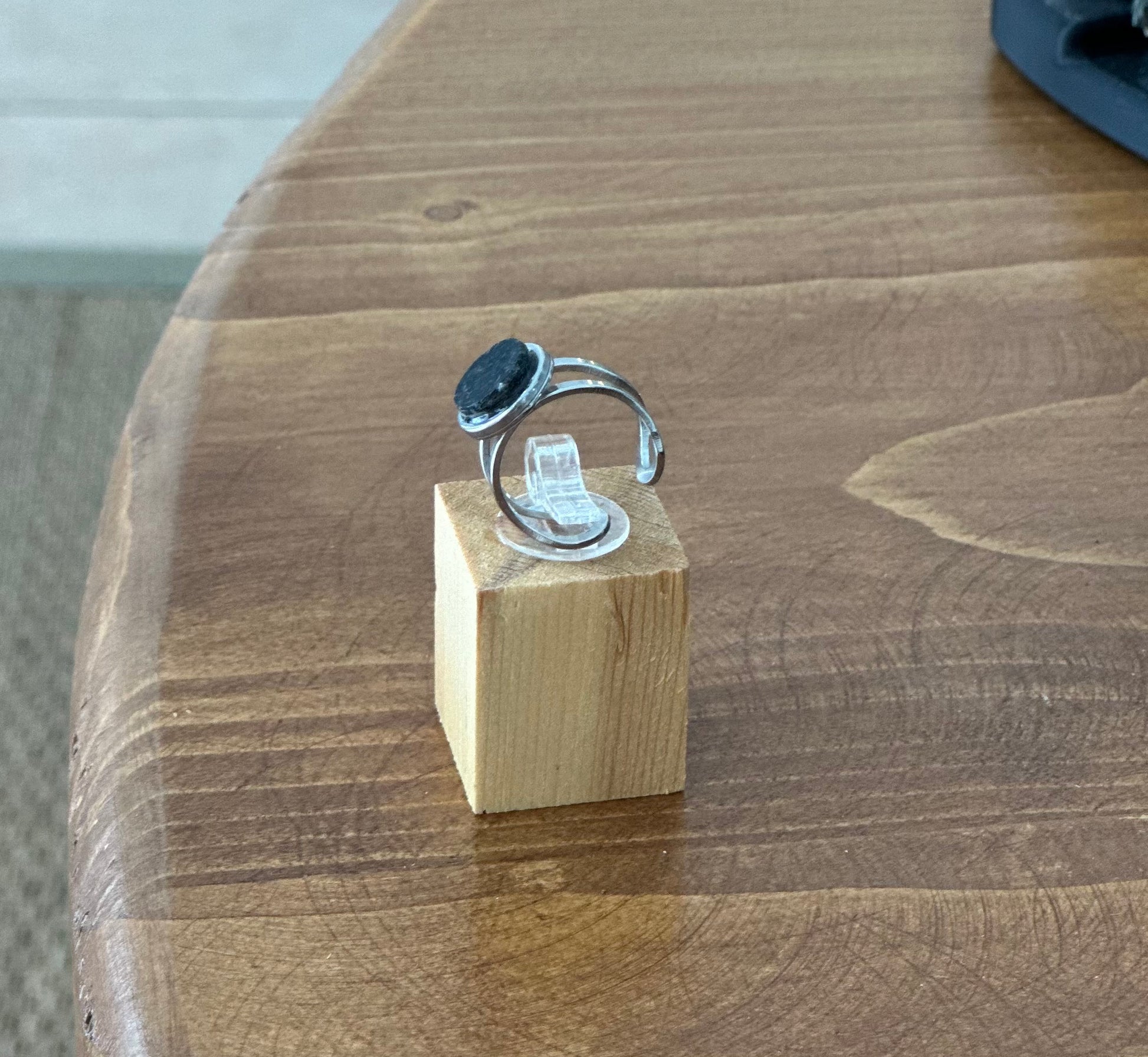 Silver double ring with black Indian granite centerpiece