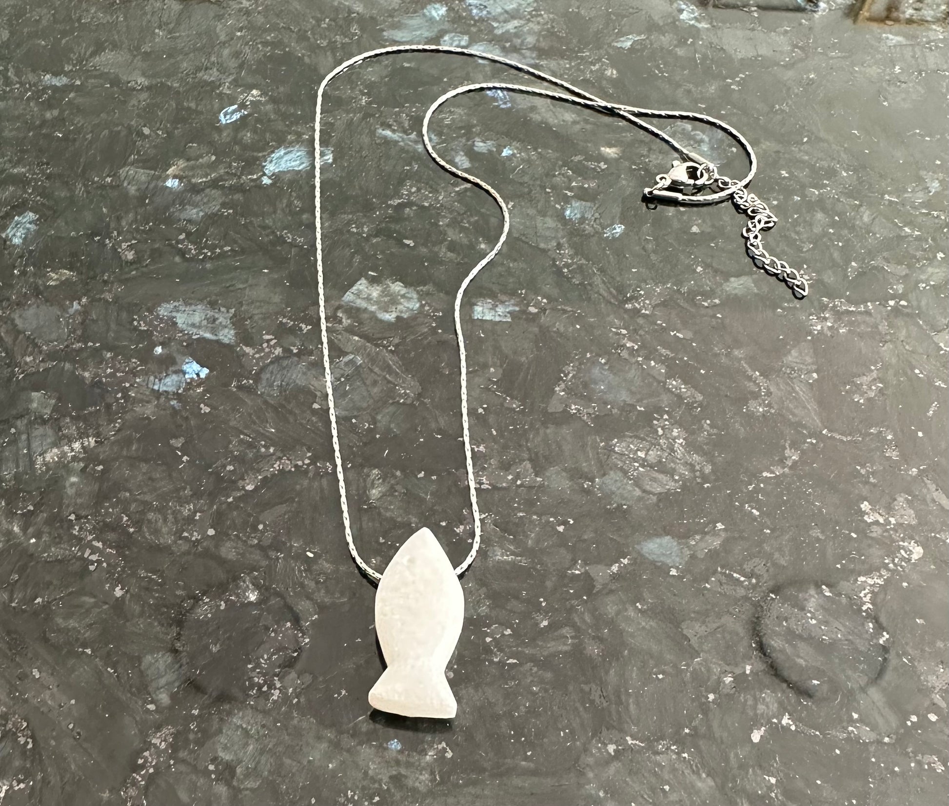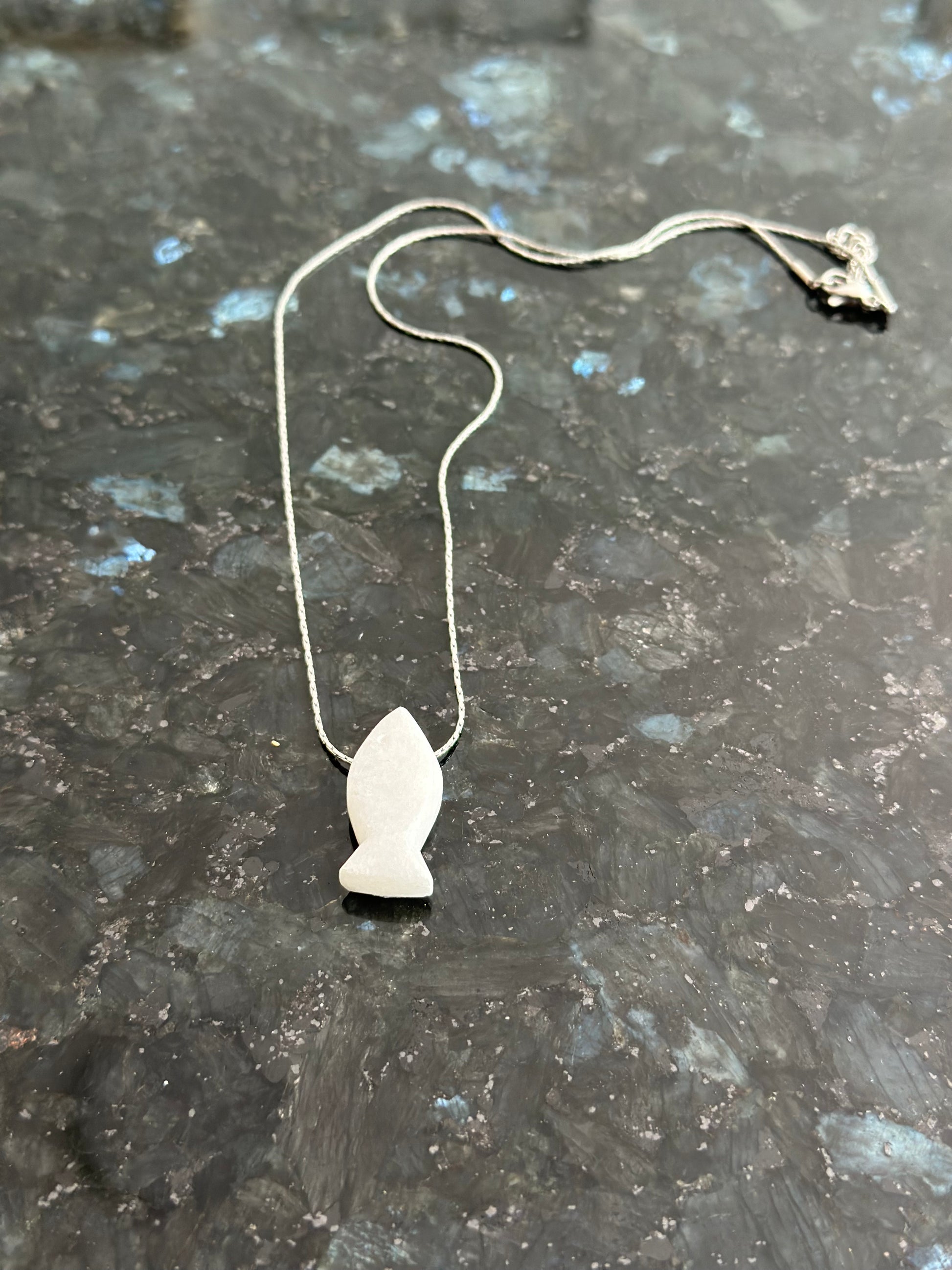 White marble fish on silver chain
